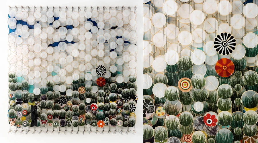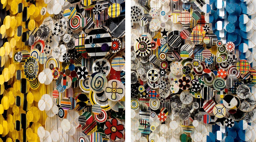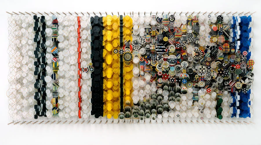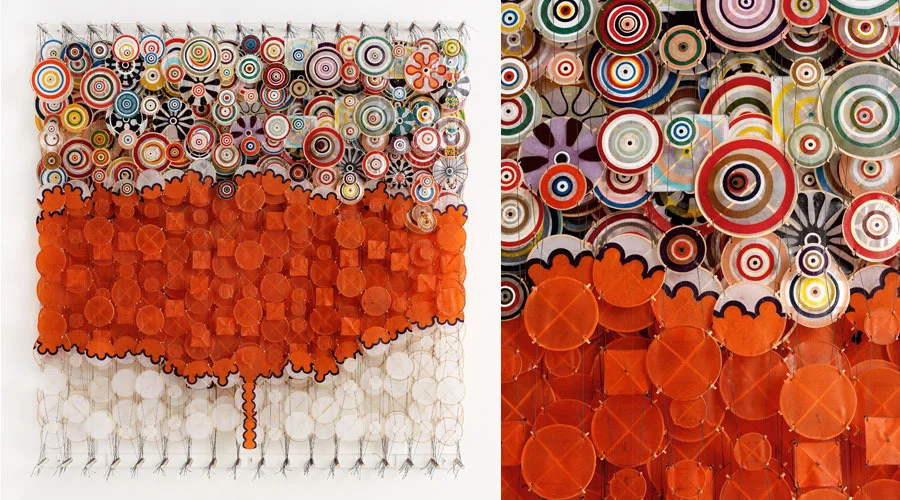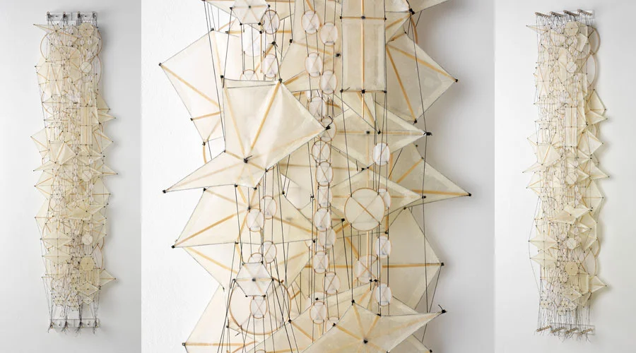 “Jacob Hashimoto V” is American artist Jacob Hashimoto's fifth exhibition at Studio la Città since he began working with the gallery in the late 1990's. For this exhibition Hashimoto is preparing a number of new, wall based kite installations which continue his exploration into the seemingly endless possibilities and curious juxtapositions between landscape and abstraction. Additionally, Hashimoto is designing on a room-sized environmental installation that will completely dominate back half of the gallery space. This complex installation is comprised of a number of intersecting elements, from digital sculpture to drawing to canopies of thousands of kites, all intersecting to create a sculptural environment that will wrap around the viewer in an overwhelming physical collage. This installation directly references older bodies of his work, quite literally wrapping them around and weaving them through more recent projects, creating a non-linear timeline of a vision that has taken him most of the last decade to realize. Visitors to the space will be allowed to walk under, through, and around the sculptural installation, the texture, lighting and angle of the work, shifting and changing as they travel through its lush architecture.